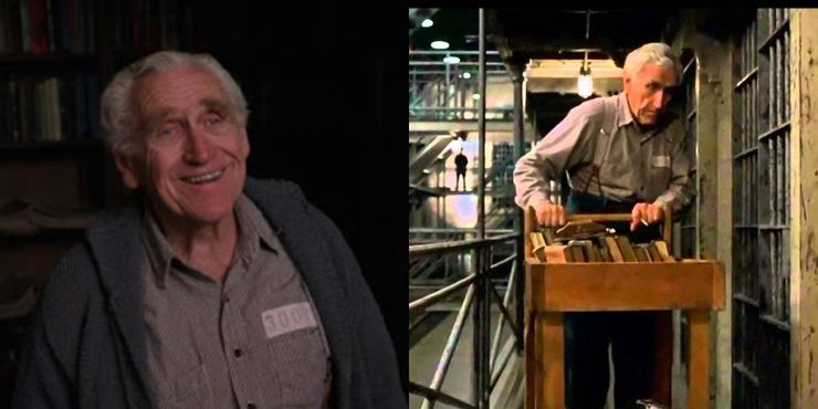Brooks Hatlen (James Whitmore) es un preso mayor que guarda un pájaro herido en el bolsillo de su uniforme de la prisión y lo alimenta con gusanos que encuentra en la comida de la prisión. También es el bibliotecario de la prisión, que usa su ruta distribuyendo libros a los presos en sus celdas para entregar contrabando. Aunque no es exactamente la definición de “salvaje” del hombre libre, para un anciano en prisión, esto es grande.
