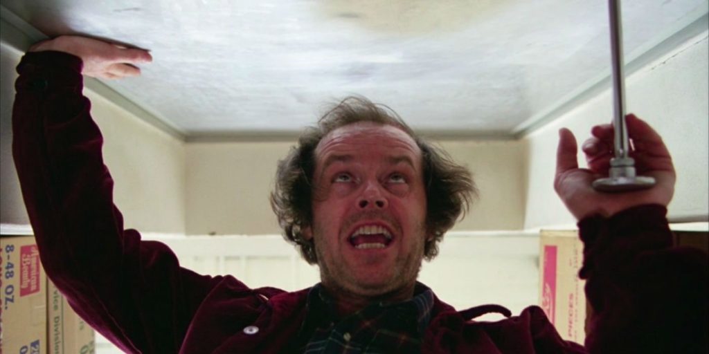 Poco después de que se haya vuelto completamente loco, lo que fácilmente podría atribuirse a una combinación de fiebre de cabina y frustración en lugar de algo sobrenatural, Jack persigue a Wendy, quien lo golpea con un bate, y arrastra su cuerpo incapacitado a un congelador. Jack entra dentro del aparato y exige que lo liberen, tratando de fingir que ha recuperado los sentidos y golpeándola con amenazas de violencia. Wendy, no siendo tan estúpida, deja a Jack encerrado y va a buscar a Danny.