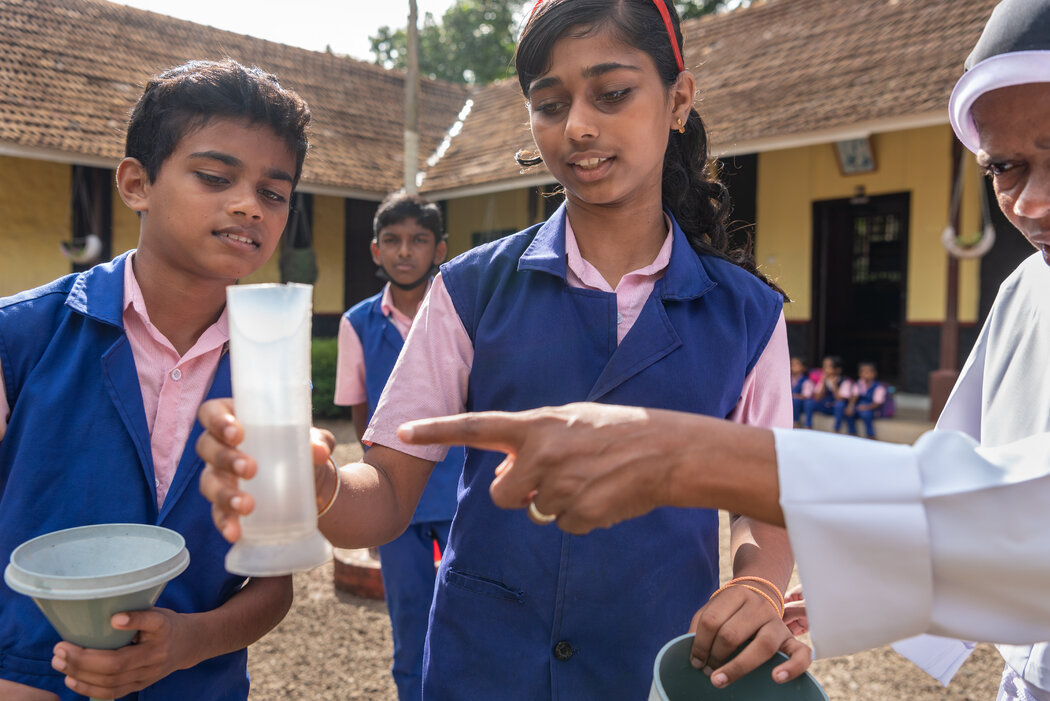 Every morning at St. Joseph’s Upper Primary School in the hilly village of Malayinchippara, at the 8:30 assembly, some of the 100 students take a reading from a simple cylindrical rain gauge, installed in 2020. They enter how much rain has fallen in a WhatsApp group set up by other volunteers.