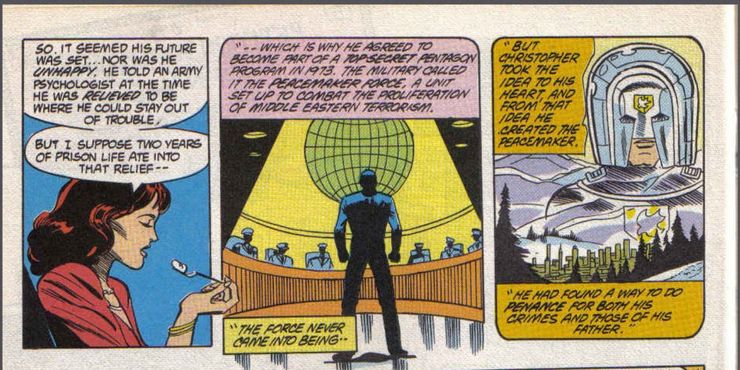 La principal intención del programa era combatir el terrorismo en el Medio Oriente, pero nunca vio la luz del día en que Gerald Ford asumió la presidencia. A pesar del fracaso del grupo de trabajo, Smith logró escapar de la prisión y se encargó de compensar sus crímenes bajo su identidad recién elegida de The Peacemaker.