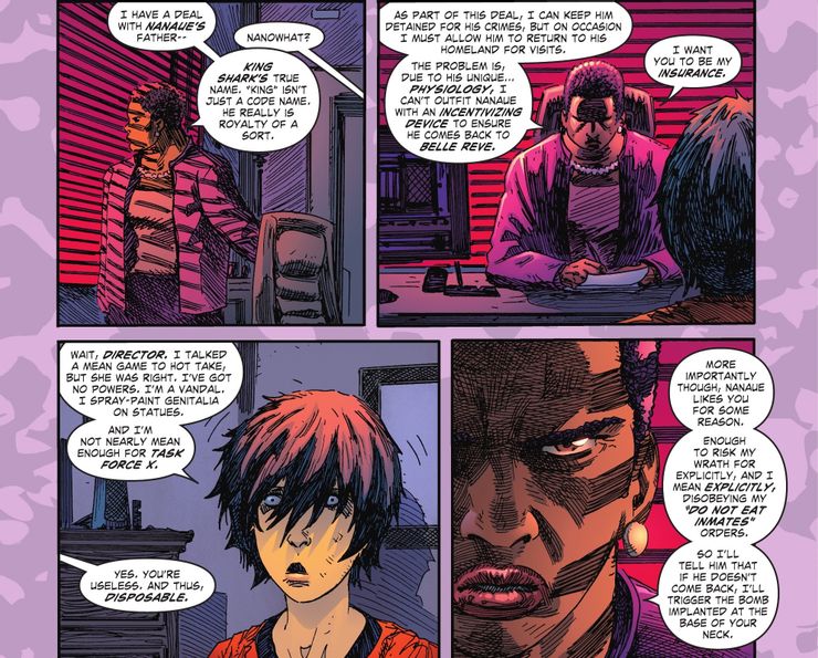 Si bien la mayoría de los miembros del Escuadrón Suicida tienen bombas en el cuello, Amanda Waller tiene un método diferente e incluso más retorcido para manejar King Shark.