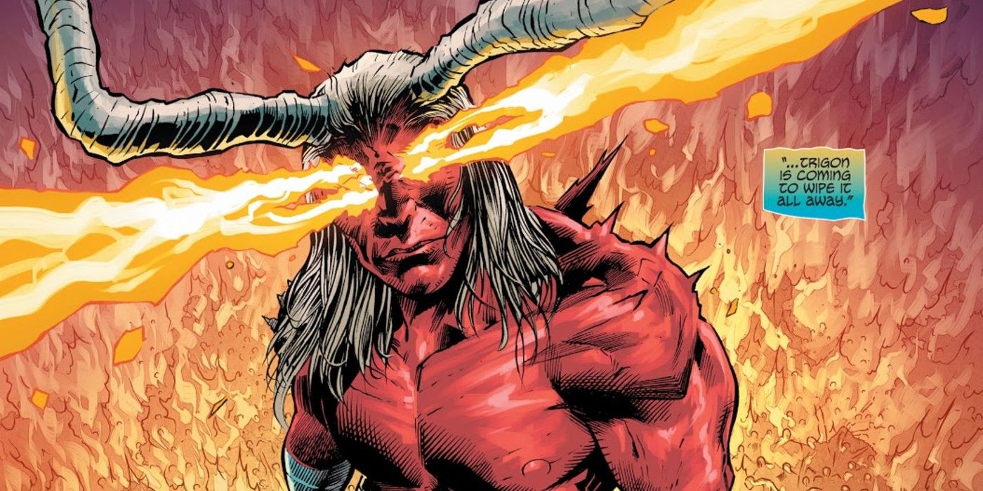Ahora que se sabe que el arma secreta de Waller fue la mitad demoníaca de Raven todo el tiempo, era sólo cuestión de tiempo antes de que Trigon regresara. Desde que Raven conoció a los Titanes, Trigon ha intentado utilizar a su hija para ayudarle a apoderarse de la Tierra. Por lo general, sus esfuerzos fracasan, pero recientemente todo lo relacionado con Raven se ha revertido. Su lado malvado ahora tiene el control mientras que la bondad de Raven está atrapada dentro de la gema en su frente. Por primera vez desde que se cruzó en sus caminos, Trigon finalmente puede tener lo necesario para derrotar a los Titanes y conquistar el mundo..