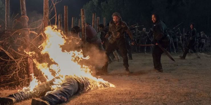 Hay un buen guiño al entrenamiento organizado que todos hicieron en el primer episodio de la temporada, y la rivalidad entre Alpha y Carol está en su punto máximo. Por no mencionar, TWD evitó hábilmente el problema común de las batallas nocturnas difíciles de ver al prenderle fuego a todo.