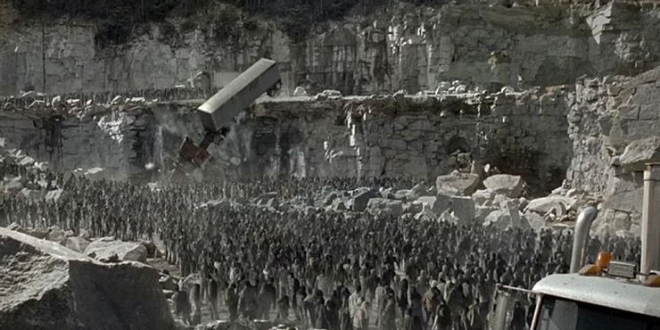 Aunque la primera secuencia dura solo unos minutos, una serie de tarjetas de título explica que la lucha contra esta manada de caminantes en construcción se lleva a cabo durante horas y horas, agotando a los alejandrinos y aumentando exponencialmente su miedo a la horda de Alpha.