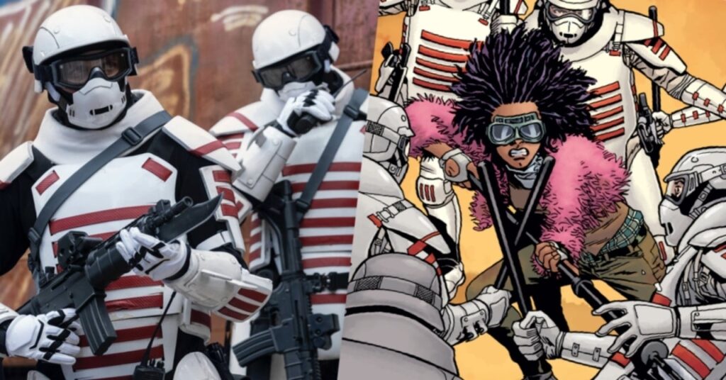 “Aquí está este grupo, aparecen, están usando esta armadura blanca que no es muy práctica, pero también tuvieron que crear estos uniformes. Es realmente genial en un cómic cuando tienes este estilo, pero es como, ‘ ¿Qué significa sobre este grupo del que forman parte? ‘”, Dijo la showrunner Angela Kang en The Walking Dead Extended Season 10 Preview Special. “Tenían que tener alguna habilidad para crear estas cosas y mantenerlas limpias y hacer que todas parecieran iguales, pero también son ingeniosas porque tienen este tipo de armas automáticas que también han transformado con una bayoneta”. así que es lo viejo y lo nuevo todos mezclados “.