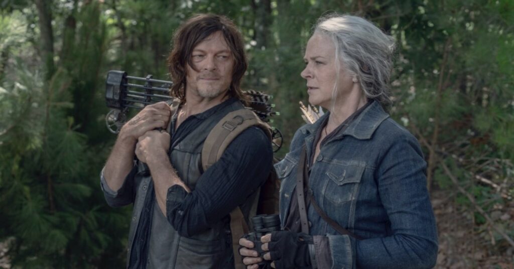 La relación de la pareja se volvió tensa esta temporada cuando Carol, empeñada en vengar al hijo asesinado Henry (Matt Lintz), se volvió cada vez más imprudente en su venganza contra Alpha (Samantha Morton) de los Susurradores. Hace poco que volvieron a hablar, Daryl y Carol llegaron a un punto bajo cuando accidentalmente causó una explosión que dejó a Connie (Lauren Ridloff) y Magna (Nadia Hilker) atrapadas dentro de una cueva llena de caminantes.
