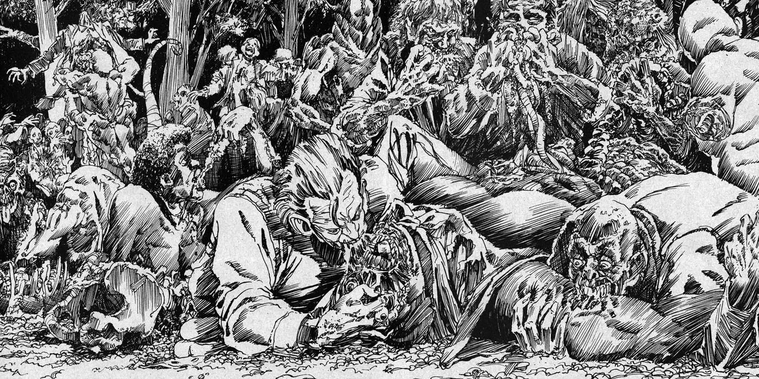 mundo muerto – creado por los escritores Stuart Kerr, Ralph Griffith, Gary Reed y el artista Vince Locke – Una maravilla en blanco y negro de libertinaje y violencia que, además de ser un documento notable de su época, aún logra capturar una cierta esencia cruda de ‘ Terror de los 80.