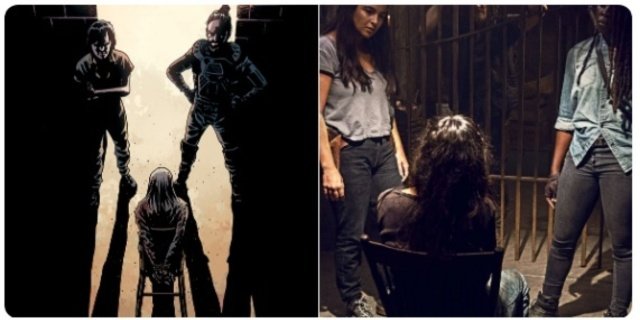 Si bien la serie AMC ha hecho algunas desviaciones importantes de su fuente de cómics, los momentos de flagrante homenaje a la obra original de Robert Kirkman aún aparecen de vez en cuando. Ahora, en el Episodio 9×09, un tributo a la portada del número 135 de The Walking Dead ha recreado un momento en el que se interrogó a Lydia. En los libros, eran Maggie y Jesús quienes estaban junto a Lydia, haciéndole preguntas sobre los Susurradores. En la serie de televisión, fueron Tara y Michonne. Si bien los personajes tuvieron que reorganizarse porque Maggie y Jesús ya no están, el encuadre del momento fue casi idéntico.