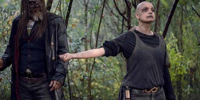 Luego vino otro salto de tiempo posible. Antes de que se viera al rey Ezequiel hablando con Judith a través de la radio (y recibiendo una transmisión alarmante de un nuevo y misterioso grupo), el episodio pasó de las secuencias de Alexandria cubiertas de nieve a un día soleado en el bosque con los Whisperers. Los árboles eran verdes. No había nieve. Parece que han pasado otros pocos meses antes de la Temporada 10.