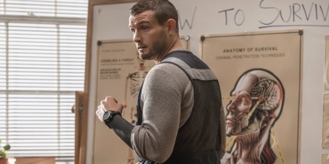 Como uno de los jefes de seguridad de esta comunidad basada en el campus, el Mundo más allá los sobrevivientes han llamado a casa para En los últimos diez años del apocalipsis, Felix es el tipo protector junto con su homólogo Huck (Annet Mahendru), otro guardia de seguridad del campus que sirvió en los Marines en el momento del brote inicial.
