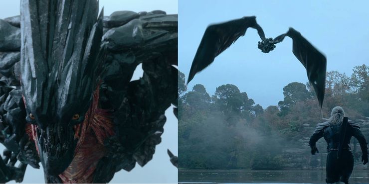 El basilisco, un monstruo común visto en muchas fábulas, era una serpiente gigante y una criatura lagarto con colmillos y garras venenosas. Aparece como convocado por la Madre Inmortal, lo que lleva a una batalla total contra los Witchers, sin duda, la mejor escena de lucha en El Brujo temporada 2.