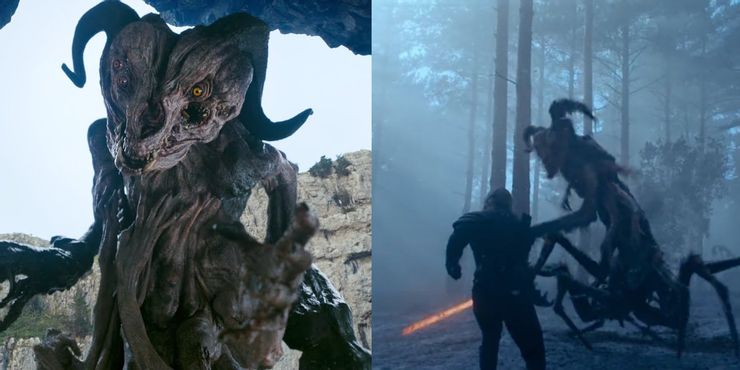 Los fanáticos pueden recordar los grandes monstruos ciempiés en los juegos. Bueno, se veía un poco diferente en la serie. Su largo cuerpo y piernas se parecían al ciempiés, pero su cabeza revelaba un nuevo giro demoníaco con cuernos de carnero y forma de calavera. Después de destrozar al Leshy, también se demostró que era una de las criaturas más poderosas del mundo. El Brujo temporada 2.