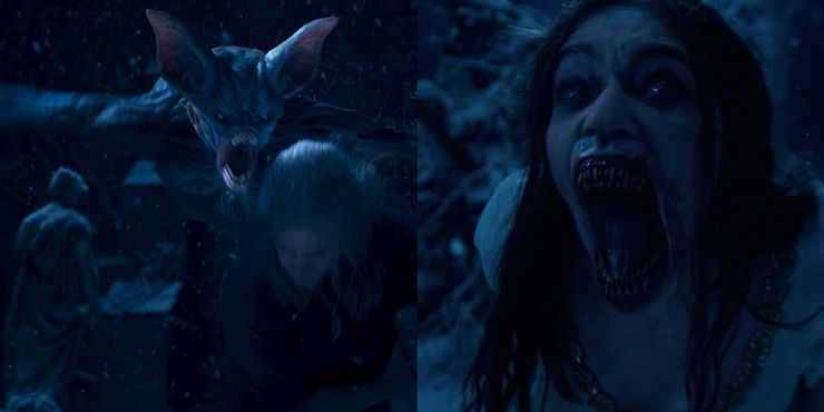 El Kikimora fue uno de los monstruos más aterradores que vieron los fanáticos en la primera temporada con su apariencia repulsiva y espeluznante. Las extremidades largas y puntiagudas eran capaces de empalar a su presa, o las bocas extensibles de las tetas podían atraparlas en sus mandíbulas. El momento más aterrador de Kikimora fue esconderse bajo el agua en el pantano y saltar sobre Geralt, lo que quizás la convirtió en una de las mejores escenas de lucha en El Brujo.
