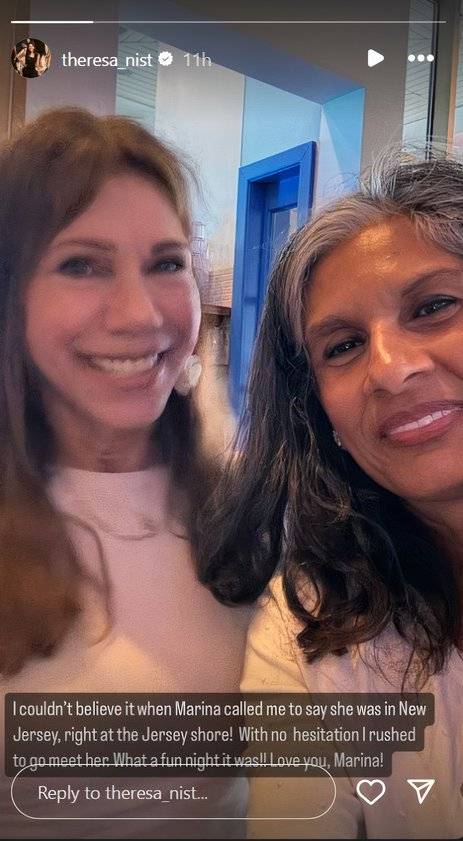 El título de la imagen publicada decía: “No lo podía creer cuando Marina me llamó para decirme que estaba en Nueva Jersey, ¡justo en Jersey Shore! Sin dudarlo, me apresuré a ir a conocerla. ¡Qué noche más divertida! ¡Te quiero, Marina!”