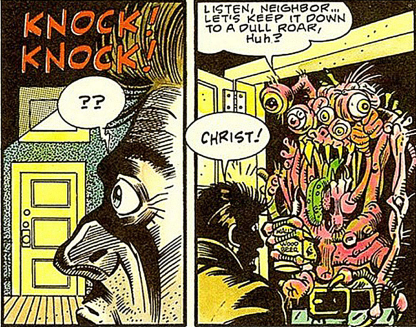 Publicado en una edición de 1986 de la Encuentros alienígenas revista de antología, “Nada”, escrita por Ray Nelson, con arte de Bill Wray, es en sí misma una adaptación del cuento en prosa anterior de Nelson, “Eight O’Clock in the Morning”, los cuales a su vez serían adaptados. en Ellos viven del aclamado cineasta John Carpenter.