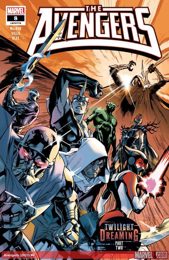 En casa de Jed MacKay y CF Villa Los Vengadores #8, Scarlet Witch y Vision deben defender a Kang de Twilight Court (un súper equipo basado en la leyenda artúrica) mientras que el resto del equipo queda atrapado en los infernales paisajes oníricos de Nightmare. Aunque Thor puede reunir a los Vengadores, Nightmare declara que ninguno de ellos podrá despertar hasta que los Vengadores reconozcan su derrota en sus manos.