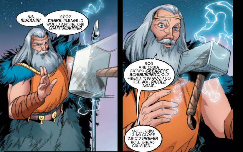 -   Buri, el bisabuelo de Thor, detiene fácilmente a Mjolnir con una palabra, mostrando su poder inigualable contra el Dios del Trueno en el último número de