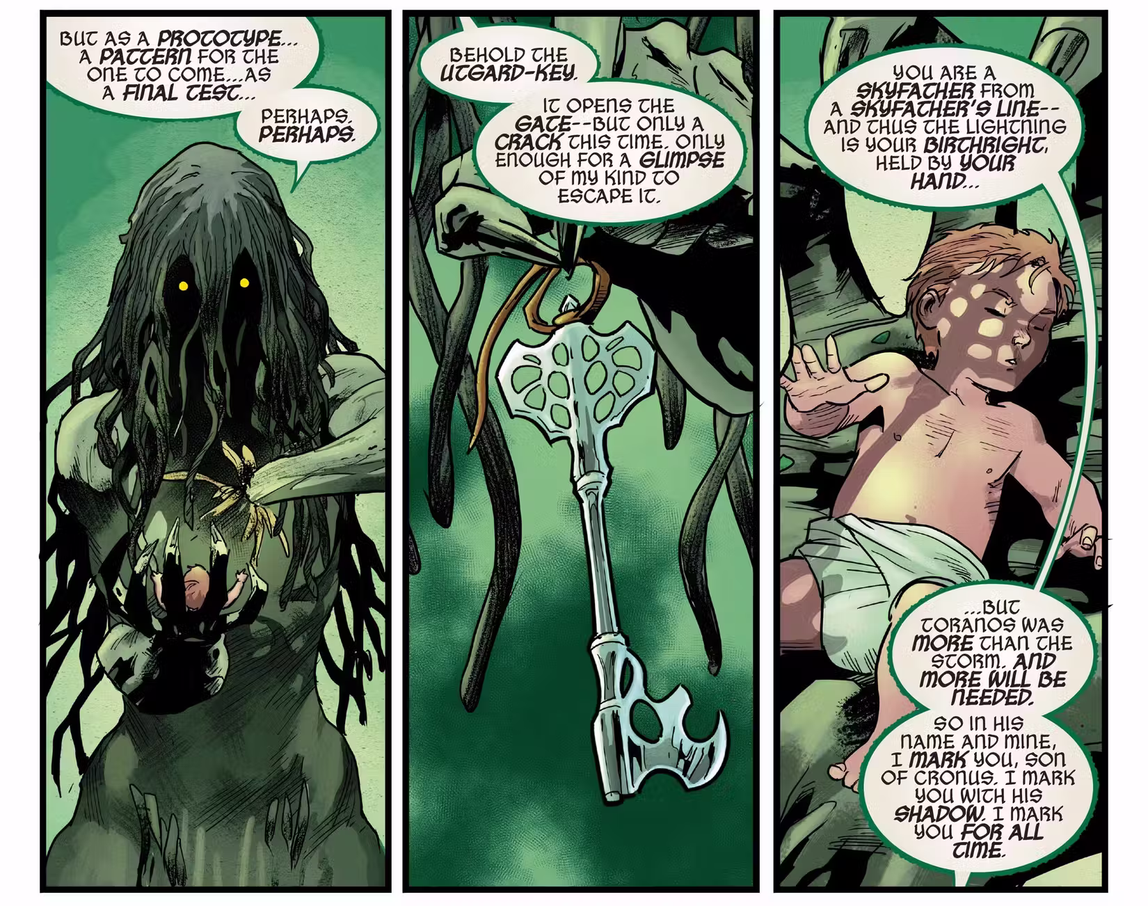 Miles de años después, Gea ungió a su nieto, Zeus, con la marca de su hermano y el Primero de Todos los Tronadores, Toranos. En el presente, después de la última resurrección de Zeus, La marca de Toranos se activó, dando nacimiento a un dios loco que anunciaría la destrucción de la Tierra. Sin embargo, después de que Zeus fue derrotado y sus poderes y su marca fueron absorbidos por Thor, el Padre de Todo se convirtió en el dios más grande que haya existido en el Universo Marvel. Ahora, mientras Thor lucha por luchar contra la oscuridad, un semidiós improbable puede demostrar su propia valía para derrotar a Thor y salvar a toda la humanidad.