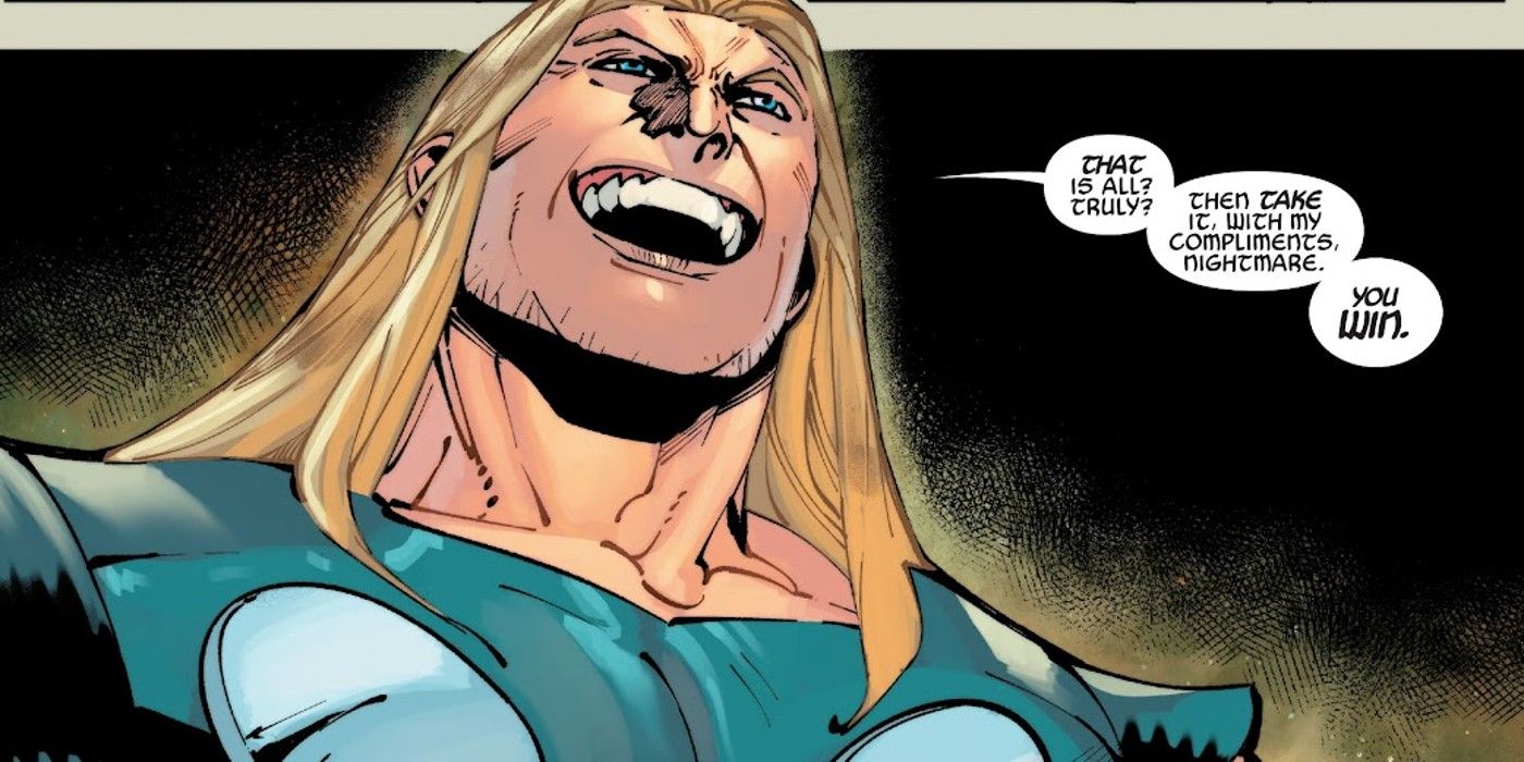 - Thor muestra su nueva humildad al someterse a Nightmare en nombre de sus compañeros atrapados para salvar el mundo.