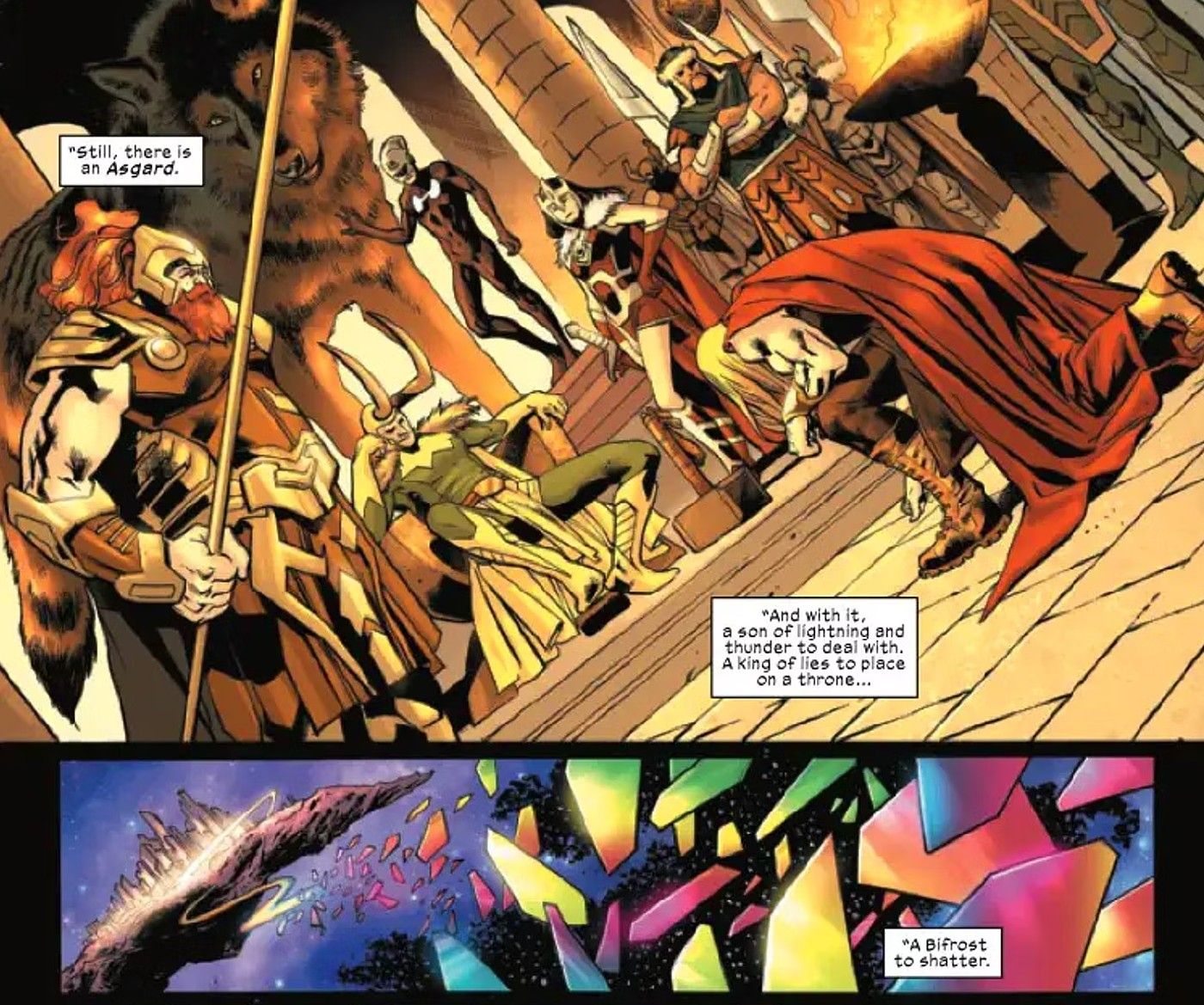 En un avance de Jonathan Hickman, Stefano Caselli y David Curiel Universo definitivo n.° 1 compartido por Marvel, los fanáticos pueden ver a Thor, de alguna manera recuperado por Tony Stark, el nuevo Iron Lad de esta incipiente dimensión. En Invasión definitiva n.° 2, Marvel reveló que el Creador, una versión malvada de Reed Richards, había reescrito la línea de tiempo de un universo entero, preparándose para gobernar sin obstáculos. Su primer movimiento fue prevenir el origen de Spider-Man, después de lo cual se dedicó a empoderar a Loki, dejando a Asgard en sus manos y dejando varado a Thor al romper el Bifrost.