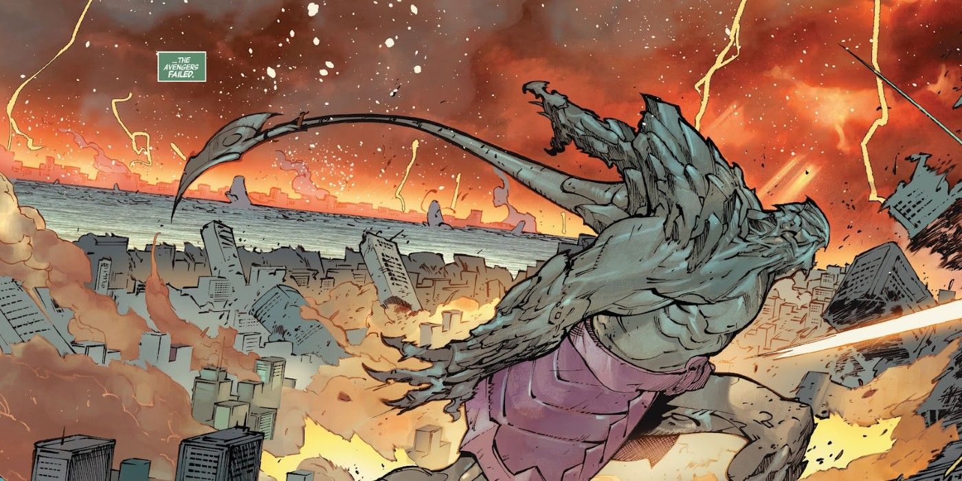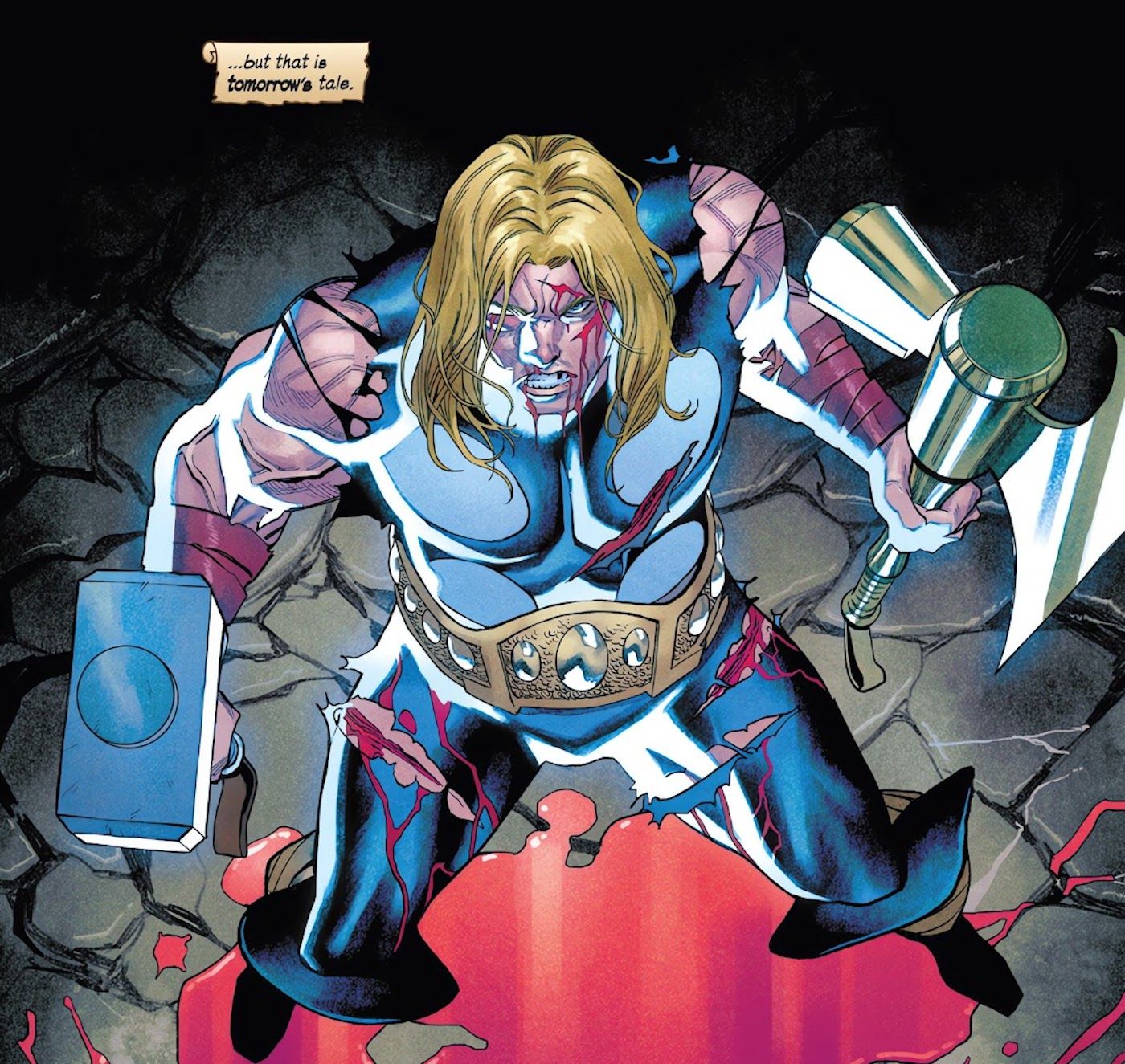“/> Los Vengadores #7 posiciona a los personajes del título en el fin del mundo tal como lo conocen. El Presbítero Negro está desentrañando la realidad ante sus ojos con sólo existir. Cuando toda la población de la Tierra es destruida excepto los héroes en medio del caos, es evidente que se pierde toda esperanza. Uno tras otro, la vida de cada Vengador se pierde en la batalla, y Thor es el primero en morir. La narración señala que Thor es el único Vengador que siempre supo que viviría para ver el fin del mundo y su propia muerte que lo acompaña. “Ha tenido mucho tiempo para llegar a la paz con este conocimiento. Nunca lo hizo”.