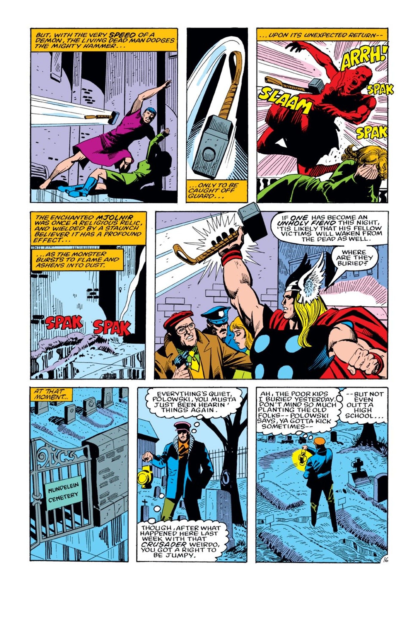 Esto se confirma en thor # 332, de Alan Zelenetz Don Perlin, Vince Colletta y George Russos, cuando Drácula hace una aparición en el Universo Marvel, poniendo su mirada directamente en Sif. Thor se encuentra frente a un vampiro y al golpear al muerto viviente con su poderoso martillo, la criatura se reduce inmediatamente a cenizas. El cómic recuerda a los lectores que, al pertenecer a un Dios y ser manejado por un creyente acérrimo, el Mjolnir encantado es técnicamente una reliquia religiosa.