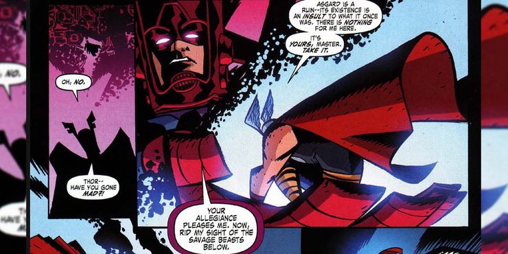 Thor permitió que Galactus destruyera a Asgard después de convertirse en su heraldo, ya que una sola acción de Loki puso al Dios del Trueno en contra de su antiguo hogar.