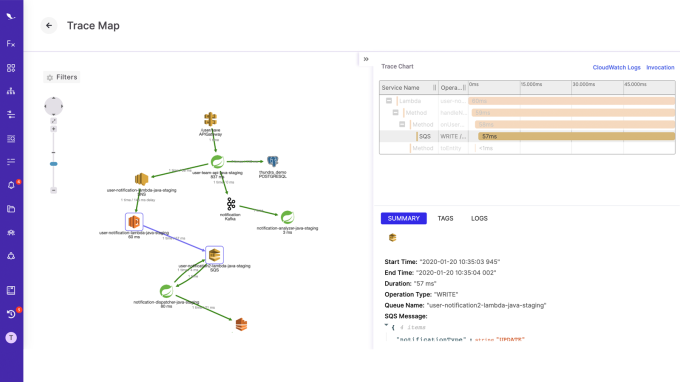 “Reunimos todo eso y brindamos una visión integral de lo que sucede dentro de la aplicación, y esto es lo que realmente hace que Thundra sea único. De hecho, podemos proporcionar una vista distribuida de alto nivel de esa aplicación en constante cambio que muestra todos los componentes de esa aplicación, y cómo están interrelacionados y cómo están funcionando. También puede solucionar problemas en el servicio local, así como ir al código de tiempo de ejecución para ver dónde se producen los problemas y hacerle saber muy rápidamente “, explicó Cheney.