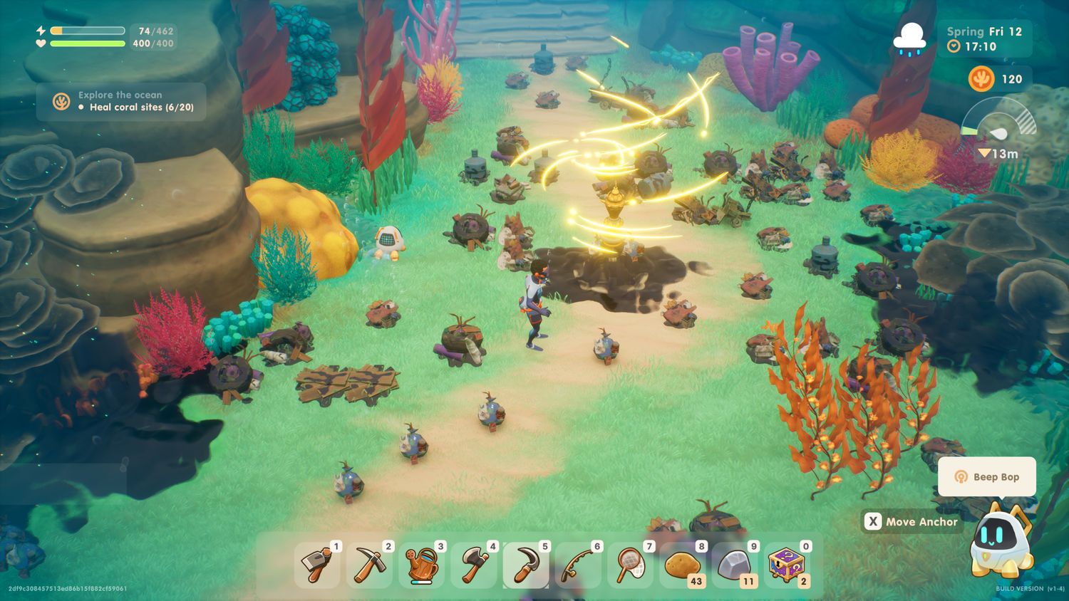 Bucear no es necesariamente una de las mejores formas de ganar dinero Isla Coral, pero es una característica única que ayuda a distinguir el juego de otros simuladores agrícolas. desbloquearás Bucear el octavo día de primavera.tu primera temporada en el paraíso, y desde allí podrás explorar un laberinto de caminos submarinos, recolectar criaturas submarinas, limpiar basura y resolver acertijos.