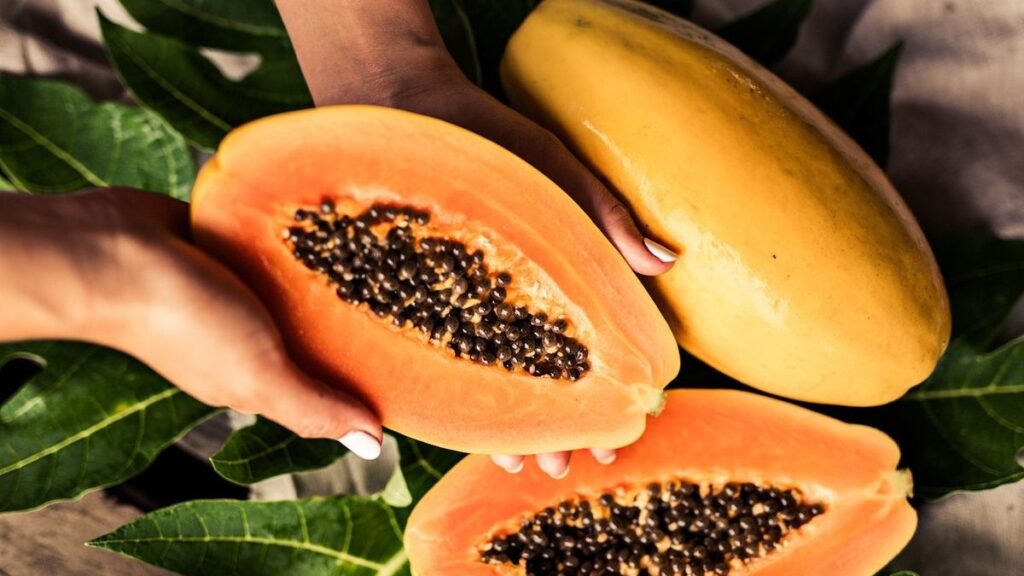 La papaya es una fruta tropical que puedes utilizar en el cuidado de tu melena. Repara las puntas abiertas en el pelo dañado, favorece el crecimiento, aporta brillo e hidrata en profundidad. Además, regula la producción de sebo.