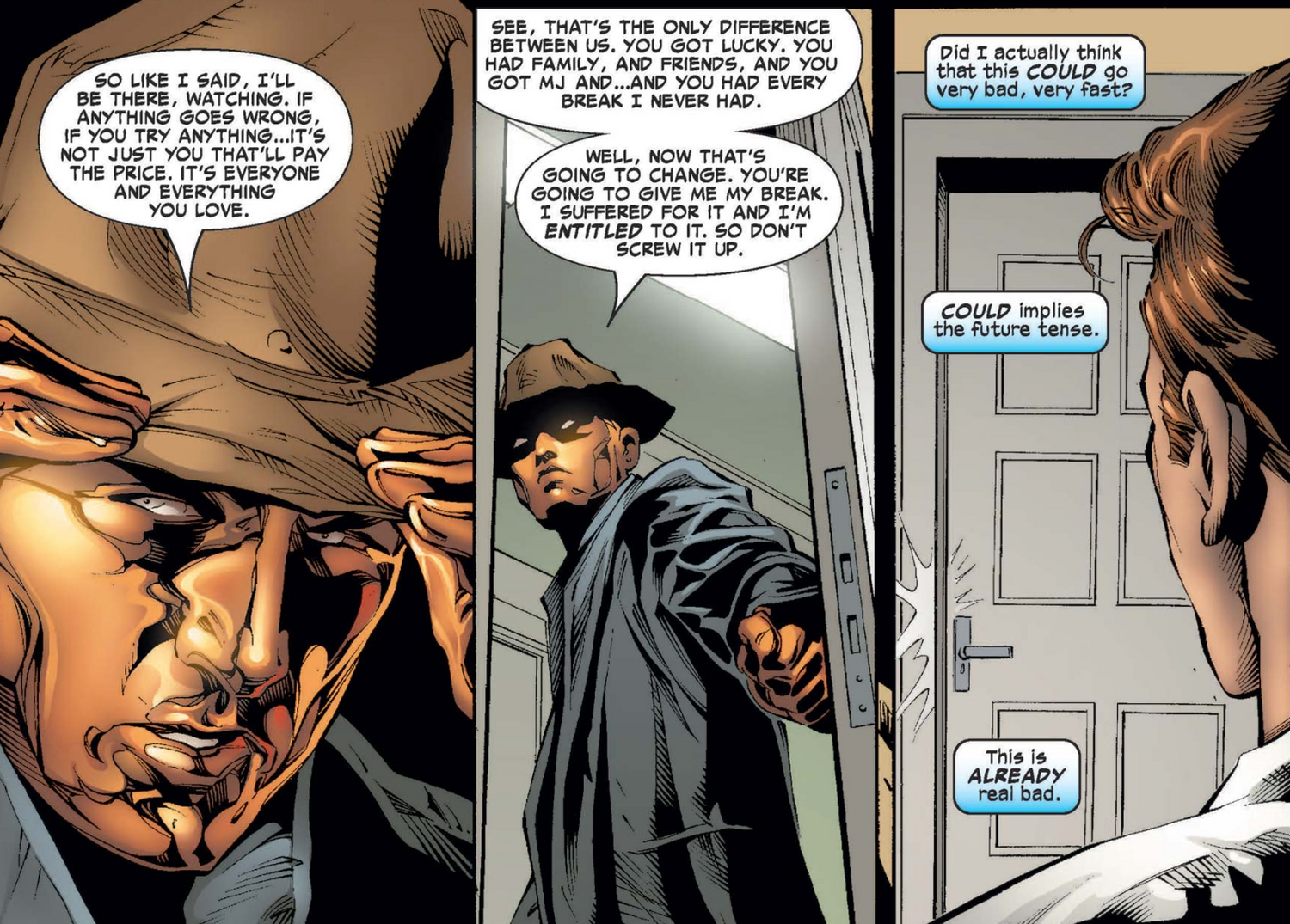 - La suerte y el apoyo familiar de Spider-Man lo diferencian de muchos de sus enemigos, incluido su ex amigo Charlie Weiderman, quien carecía de estas ventajas y termina convirtiéndose en un villano.