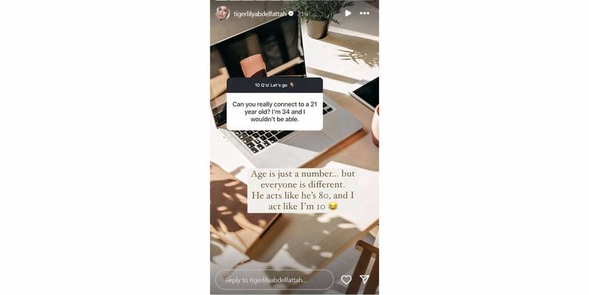 Puede que Tigerlily no lo admita, pero Prometido de 90 días: antes de los 90 días está revelando cuán equivocado está Adnan para ella como marido. Es más que solo su edad lo que es una señal de alerta. Sin embargo, lirio de tigre está en Instagram diciéndoles a sus seguidores que su edad y la de Adnan realmente no hacen una diferencia para ella en su matrimonio. Cuando alguien le preguntó si podía conectarse con un chico de 21 años, Tigerlily dijo que la edad es solo un número. “Pero todos son diferentes”, añadió. Según Tigerlily, Adnan actúa como si tuviera 80 años mientras ella se comporta como una niña de 10 años..