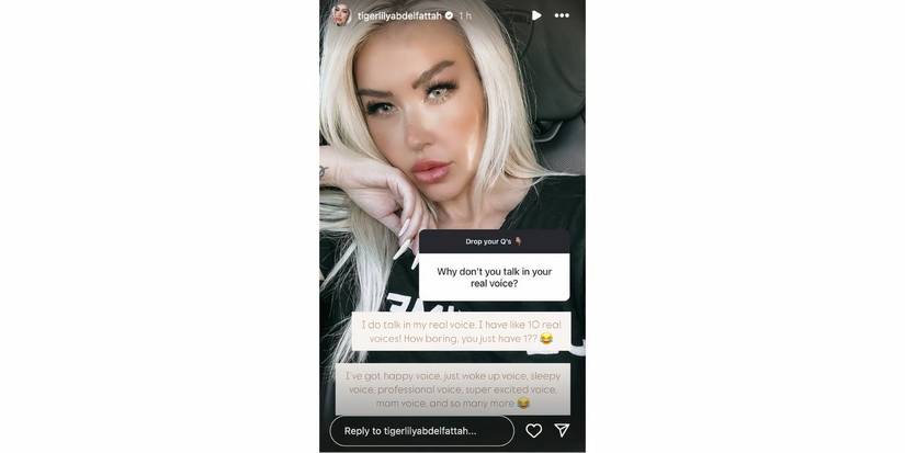 Un audaz Prometido de 90 días El espectador incluso se acercó a lirio de tigre en Instagram para preguntarle sobre su voz, lo que aparentemente hace que algunos fanáticos se salten sus segmentos con Adnan. El fan preguntó: “¿Por qué no hablas con tu voz real?”durante una de las habituales sesiones de preguntas y respuestas de Tigerlily. Tigerlily compartió una selfie y escribió: “Hablo con mi voz real,” antes de agregar que ella tiene “¡Como 10 voces reales!” Ella llamó al fan “aburrido”por tener una sola voz.