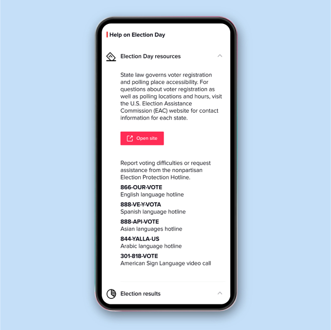 TikTok también se vinculará al sitio web de la Comisión de Asistencia Electoral de EE. UU. (EAC) para obtener información sobre los lugares y horarios de votación.