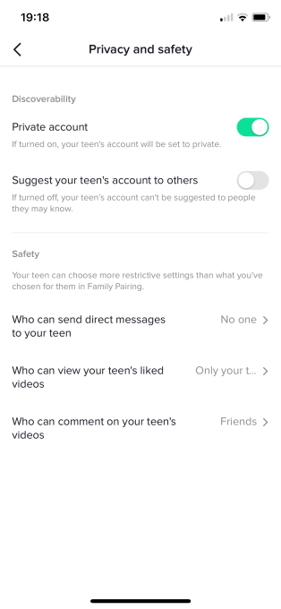 Por último, pueden optar por cambiar la cuenta del adolescente de pública a privada. Esto último limitaría la capacidad de descubrimiento solo a aquellas personas que el adolescente conoce y aprueba. Una cuenta privada tiene sentido para un niño menor, por supuesto, pero los adolescentes a menudo hacen pública su cuenta con la esperanza de obtener más vistas para sus videos o volverse virales.