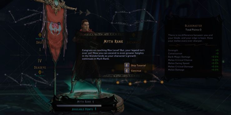 Mythic Ranks funciona bajo un sistema de árbol de habilidades rotativo. Hay cuatro árboles de rangos míticos en los que los jugadores podrán poner puntos míticos: druida, archimago, maestro de espadas y certero. Los jugadores estarán limitados en cuanto a dónde pueden gastar sus Mythic Points, ya que los jugadores solo tendrán acceso para subir de nivel un árbol a la vez, y el árbol disponible cambiará en función de una rotación en el sentido de las agujas del reloj alrededor de la pantalla. Esto significa que los jugadores se verán obligados a invertir la misma cantidad de puntos en cada árbol de rango mítico a medida que aumentan su rango mítico.