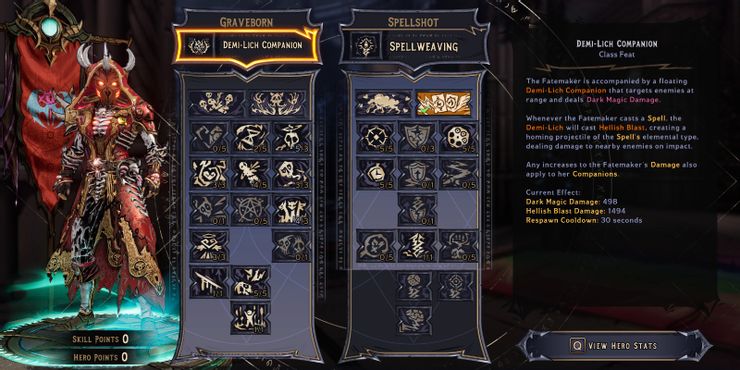 Para utilizar completamente los rasgos únicos de Graveborn, los jugadores querrán apoyarse en Spell Damage. ‘Blast Gasp’ y ‘Ascension’, dos de los pasivos Graveborn más poderosos, se basan en un estilo de juego basado en hechizos. Para aprovechar al máximo el Graveborn, la mejor configuración de Compañero de Graveborn deberá aprovechar estos pasivos para explotar el daño de la configuración. Combine esto con la dependencia de recargar para convocar compañeros; el Spellshot es la clase secundaria perfecta para una construcción de compañero Graveborn.