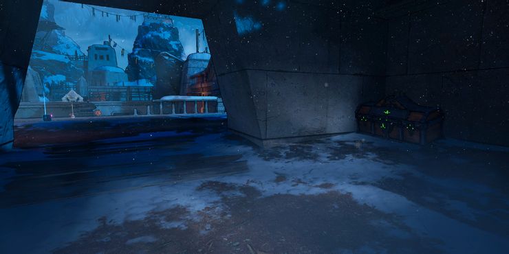 - Cofre 1 (Nivel 1): Desde la entrada del área de nieve, mire hacia la colina a la izquierda para ver una posible ubicación de cofres.