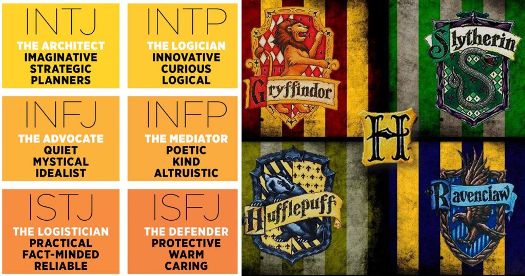 ¿No sería divertido clasificar todos los tipos de personalidades de Myers-Briggs en Hogwarts Houses desde Harry Potter? Bueno, no busques más! Aquí, podrás ver los 16 tipos de personalidad colocados en sus casas legítimas, ya sean Gryffindor, Hufflepuff, Ravenclaw o Slytherin.