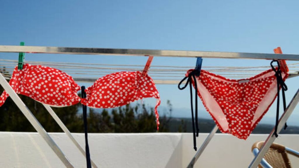 Luego, coloca el bañador o bikini del revés, colgando o sobre una superficie horizontal de acuerdo con las instrucciones de la etiqueta, y deja que se seque naturalmente, pero lejos de la luz solar directa.
