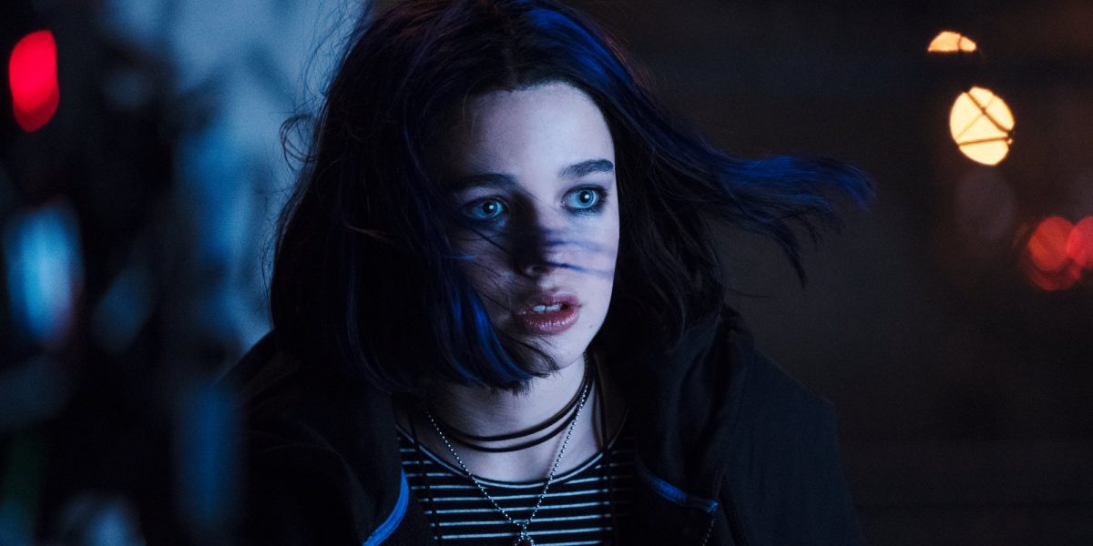 Una producción aún de la temporada 2 de Titanes muestra el fulcro de la serie Raven con su aspecto icónico de una gema roja sujeta a su frente. La primera temporada del programa de historietas fue un asunto muy impredecible, con una serie de retoques que alteraron drásticamente el marco de la serie para centrarse en el hosco y melancólico Dick Grayson a expensas de los arcos para los otros personajes.