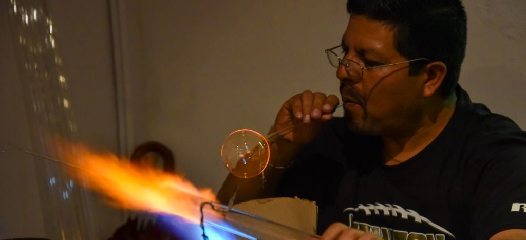 Este pueblo mágico, fundado por mineros españoles, ha ido pasando la tradición de la elaboración de esferas navideñas entre familias que trabajan frente al fuego intenso o pintan y decoran estos ornamentos.