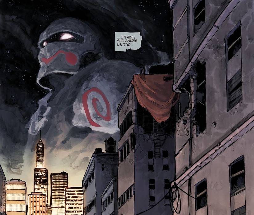 Tortugas Ninja Adolescentes Mutantes: Vigilante Nocturno #1 de Juni Ba, Fero Peniche, Luis Antonio Delgado y Nathan Widick trae al justiciero titular a IDW Tortugas Ninja canon, excepto que esta vez no es Rafael bajo la máscara. Jennika, la quinta tortuga, se ha convertido en la nueva Vigilante Nocturna., vestido con una armadura amenazante como Rafael. Su objetivo es proteger a los residentes de Mutant Town, como se demuestra cuando salva a un niño mutante, Korey. El niño luego expresa su aprecio por Nightwatcher y lo que ella hace por Mutant Town: “La amo. ¿Y adivina qué? Creo que ella también nos ama”.