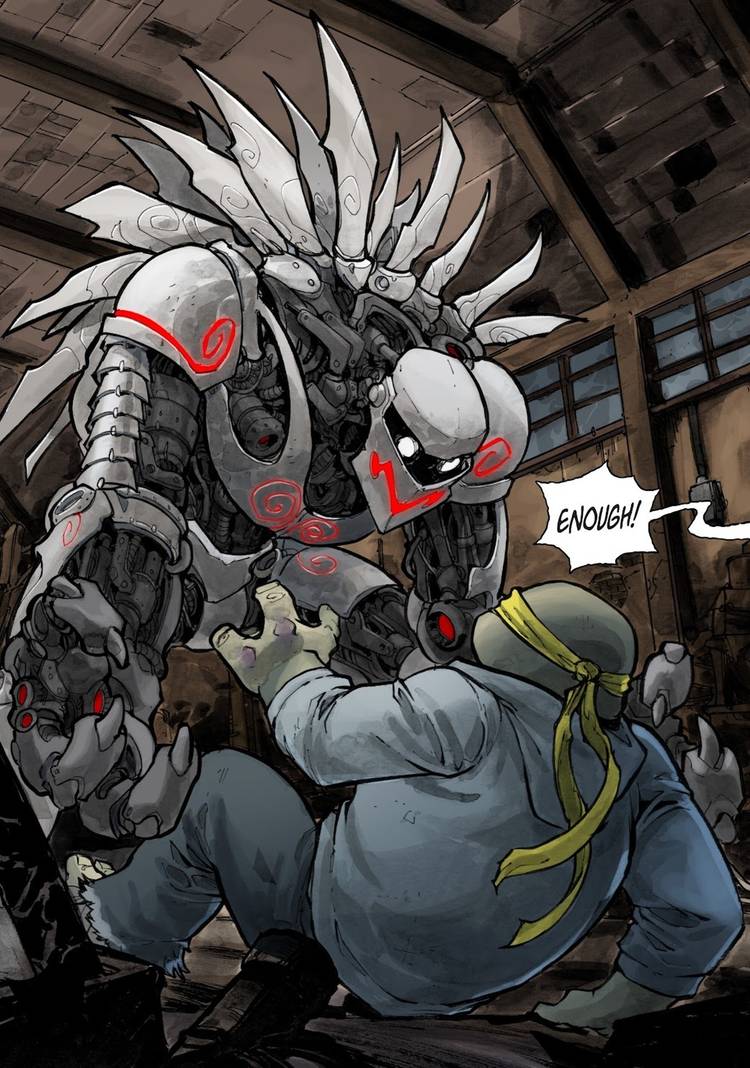 Una criatura enorme toma como rehenes a jóvenes en Mutant Town, por lo que Jennika decide unirse a la lucha y poner fin al caos. Ella logra defenderse, pero es derribada y la capa de la criatura se cae para revelar que es un robot que tiene un parecido sorprendente con la armadura del Nightwatcher.