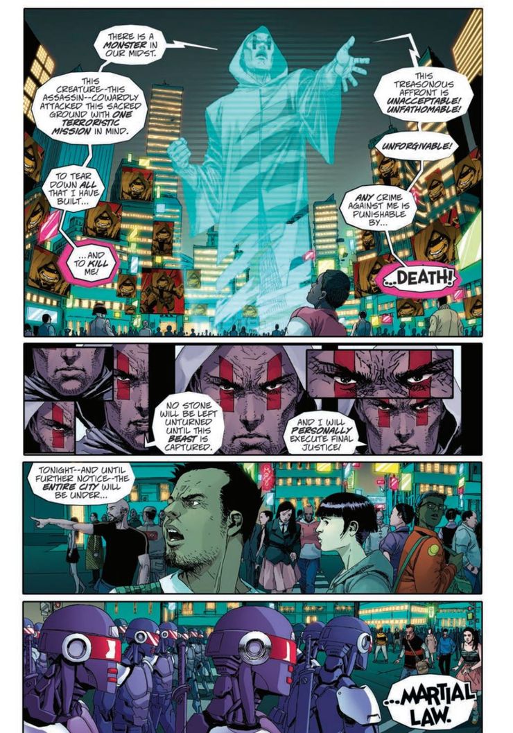 En un discurso manipulador, les dice a los ciudadanos de Nueva York que los ha mantenido protegidos durante más de dos bailes, por lo que es hora de que escuchen sus palabras. Dice que un monstruo “está entre nosotros” y que el cobarde lo atacó con un objetivo: matarlo. Calificando el ataque de traición e inaceptable, Hiroto les dice a los observadores que cualquier crimen contra él será castigado con la muerte. También dice que rastreará a la “bestia” y se ejecutará personalmente. Para colmo, declara la ley marcial.