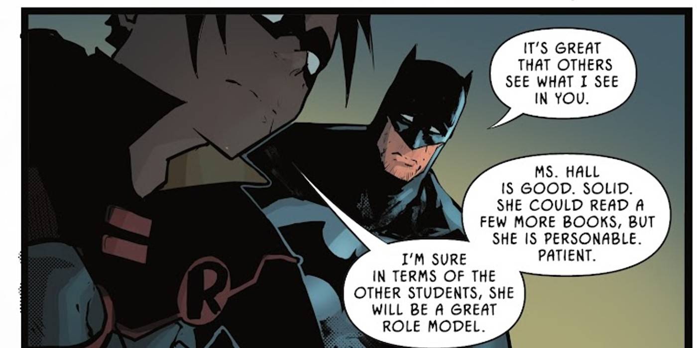 No obstante, es otro ejemplo de cómo las nuevas aventuras de Batman y Robin finalmente se están alejando de centrarse estrictamente en su tiempo como héroes y acercándose más a su tiempo como familia real. Actualmente, los lectores están viendo un lado de la relación de Damian y Bruce nunca antes visto en los cómics, uno que enfatiza lecciones de menor riesgo en las citas, la vida escolar y toda la mundanidad intermedia. Se trata de cómo Damian puede vincularse con su padre como hijo y cómo Bruce puede estar ahí para los jóvenes. Robin de maneras que no exigen batman capucha.
