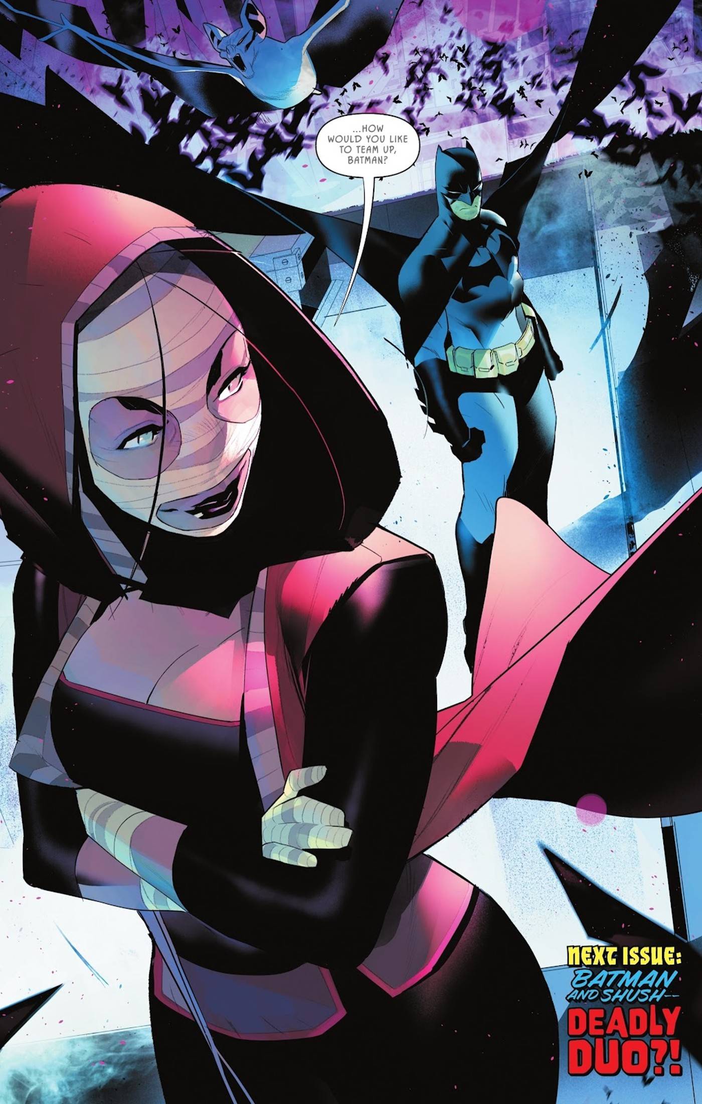 La obsesión de Batman por las mujeres fatales, por supuesto, no es nada nuevo. Batman ha estado notoriamente vinculado románticamente con varias mujeres que resultan ser supervillanas y criminales, con mayor frecuencia cuando se llaman Catwoman. No olvidemos que la madre del hijo de Bruce, Talia al Ghul, también entra en esta categoría. Es más que un simple patrón recurrente, ya que este número lo reconoce como un chiste mientras Damian continúa persiguiendo a su propia mujer fatal, Flatline, mostrando cuánto Damian ha heredado el peor rasgo de su padre.