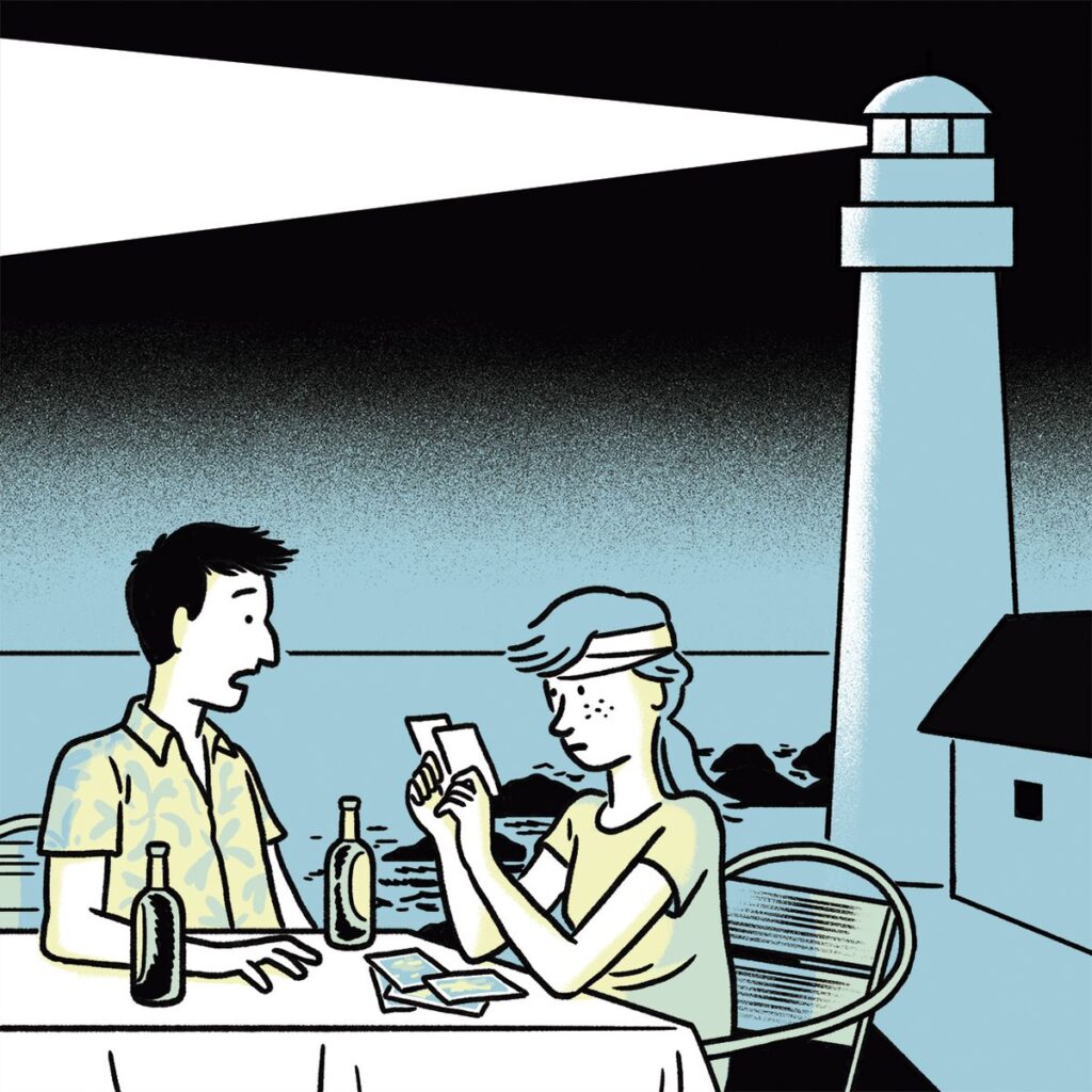 Lo demás ya te lo sabes, y lo que no, te lo puedes imaginar: nos cambiamos las maletas por error, Francisco intenta escapar por la ventana de su faro cuando Patricio entra allí y, al no conseguir salir por la ventana, sube hasta arriba y salta desde el faro, preso del pánico, convencido de que un extraterrestre le estaba persiguiendo. Patricio no encontró las fotografías porque, antes de saltar, Francisco las escondió en el bolsillo secreto de mi maleta. Lo que sí que vio fue nuestra foto, y entendió que nos habíamos cambiado las maletas.