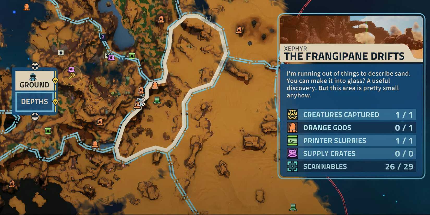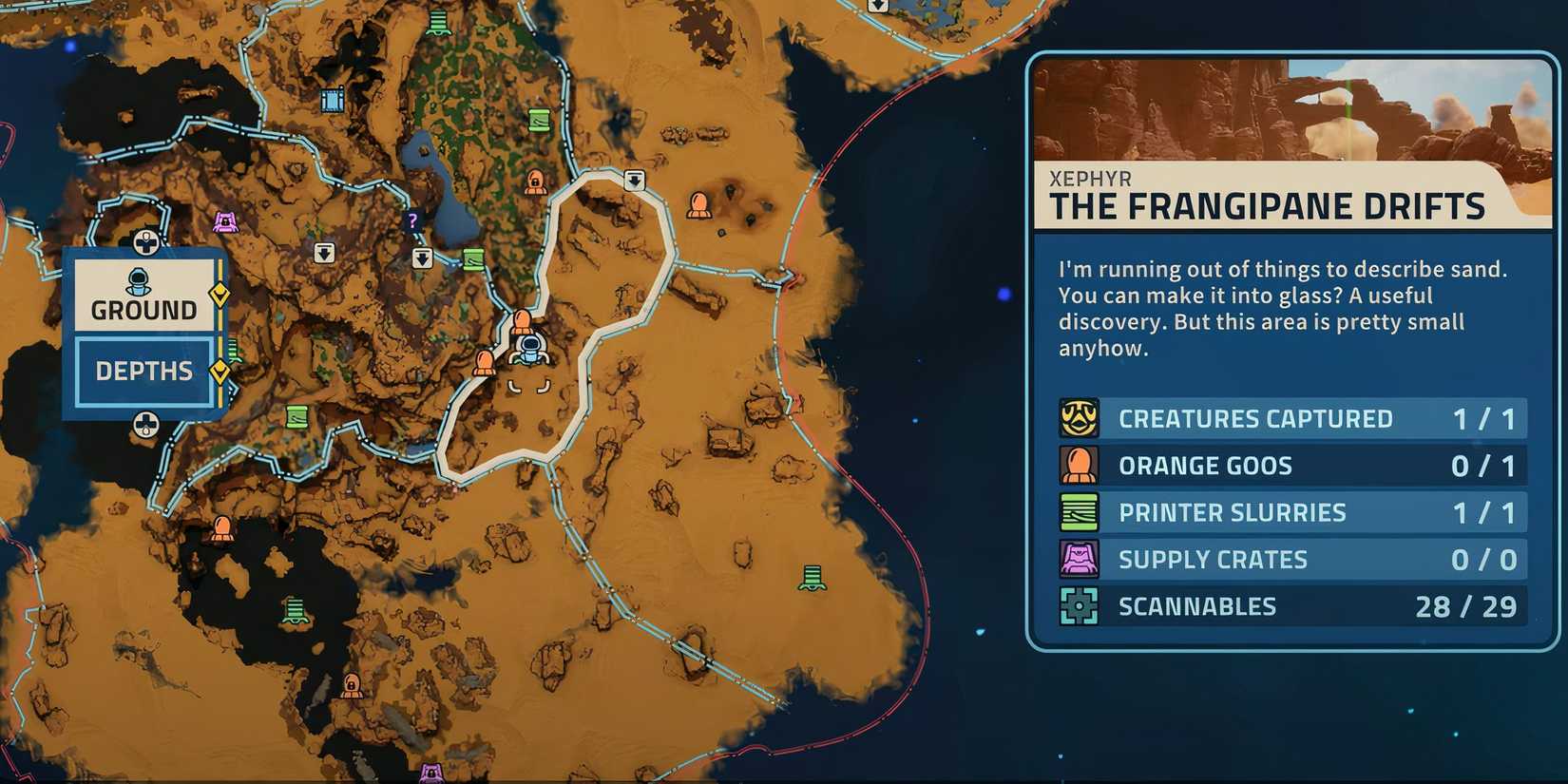 Para obtener todas las bolas naranjas de Goo en Xephyr, tendrás que explorar completamente todas sus subregiones. Muchos de estos están cerca el uno del otro y no requieren una exploración demasiado extensa. Una buena cosa sobre las bolas naranjas de Goo es que siempre puedes regresar más tarde y obtenerlas si no tienes las actualizaciones requeridas en tu traje, látigo, arma, etc.