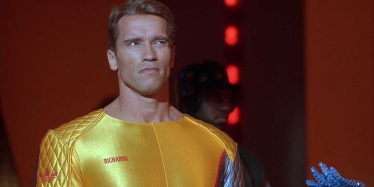 Desde mediados de la década de 1980 hasta mediados de la de 1990, Schwarzenegger realizó la mejor racha de su carrera, produciendo hit tras hit. De 1987 El hombre corredor no fue una de las historias de éxito financiero más importantes de este período, pero le fue bien y se ha convertido en un clásico de culto. La película adapta libremente el libro de Stephen King del mismo nombre, con Ben Richards de Schwarzenegger incriminado por asesinato y colocado en un juego mortal de matar o morir. Largo tiempo Disputa familiar El presentador Richard Dawson brilla como el sórdido presentador del juego titular, y El hombre corredor está repleto de la mejor clase de estupidez y acción exagerada de los ochenta.